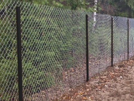 Забор из сетки рабица самый простой и недорогой вид ограждения участков.
